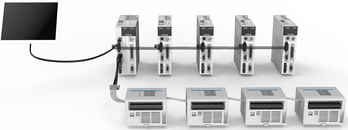 支持DBUS主/從站協(xié)議,DBUS組網(最大16臺),消滅位置指令脈沖線,不再受脈沖干擾的困擾