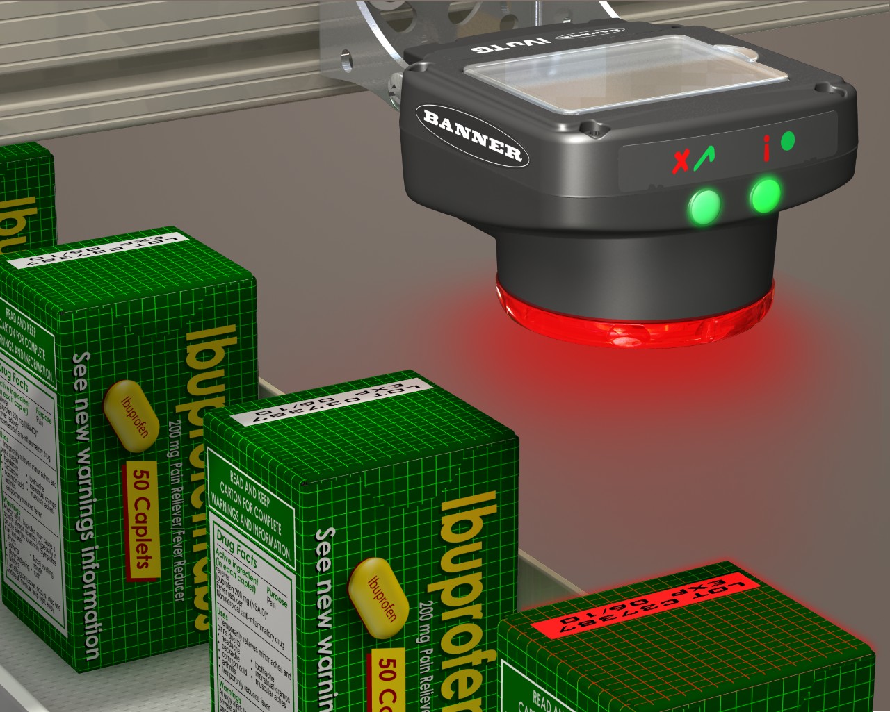 要檢驗每個包裝上是否印有日期/批號,可以將iVu系列傳感器配置為Match工具。