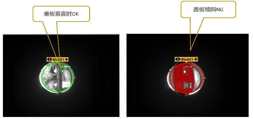 使用BOLB面積工具進(jìn)行有無(wú),以及傾斜的檢測(cè)。
