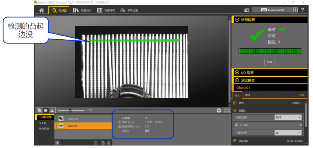 使用Object工具對(duì)凸起的邊沿進(jìn)行檢測,輸出凸起的數(shù)量。