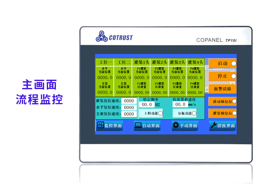 不同工位在觸摸屏上對應位置按鈕,設置不同參數(shù),以及復位報警操作。