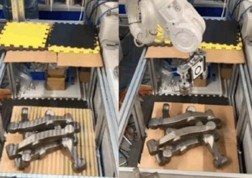 在青島一家汽車零部件供應商的生產車間里,成箱的金屬連接件被傾倒在料框中,形態(tài)各異、堆疊交錯。過去,這里需要兩名工人不斷彎腰分揀、擺放,效率低且勞動強度大。如今,一臺搭載3D視覺的機械